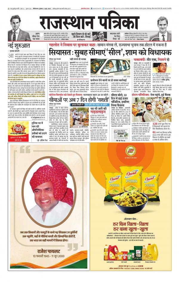 Aaj Ka Today News Paper Rajasthan Patrika - Read latest rajasthan news, rajasthan ki taza khabar, राजस्थान न्यूज़ on patrika hindi news website. Aaj Ka Today News Paper Rajasthan Patrika : Rajasthan patrika is a hindi language daily newspaper published from rajasthan, india.