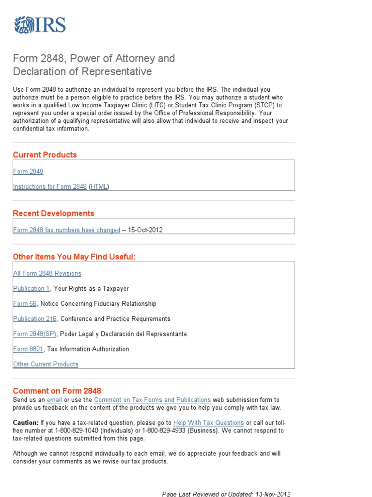 Form 2848 Power Of Attorney And Declaration Of Representative Irs Free Download - Form 2848 will not be honored for any purpose other than representation before the irs.