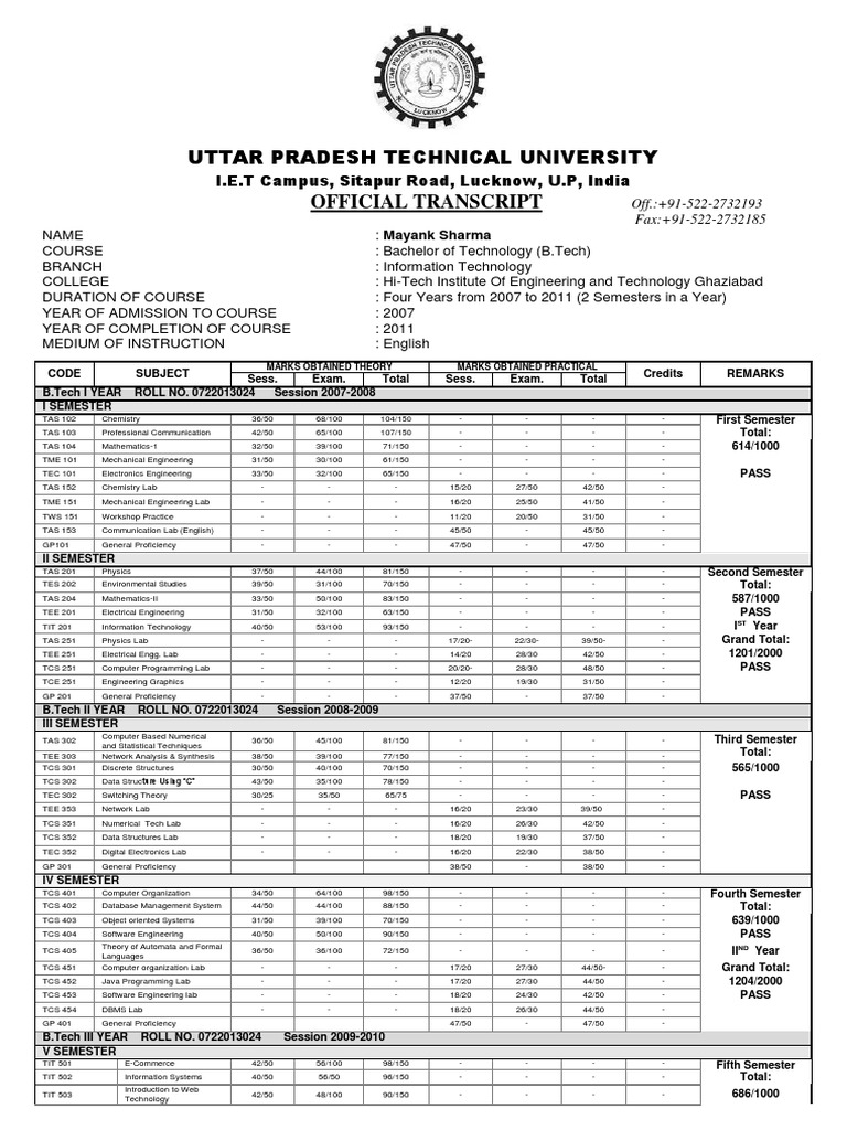 Uptu Transcript Technology Engineering Engineering - Ignou passing marks for theory,practical,assignment and project of ignou!!