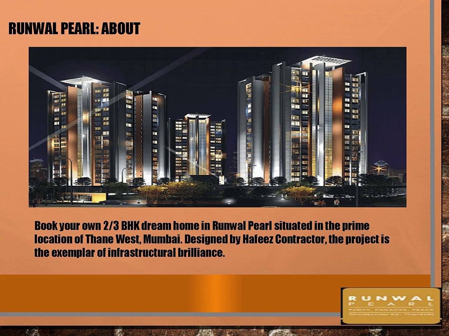 Runwal Pearl Thane West / Apartments / flats, independent houses. Runwal Pearl Thane West - Spreading its roots across 9 acres in thane west, runwal eirene is the place you can experience the best of both worlds.