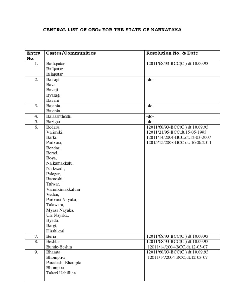 St Sub Caste List In Karnataka : Caste certificate is generally issued by the concerned district tehsildar or sub divisional magistrate. St Sub Caste List In Karnataka - This community is spread across the state.